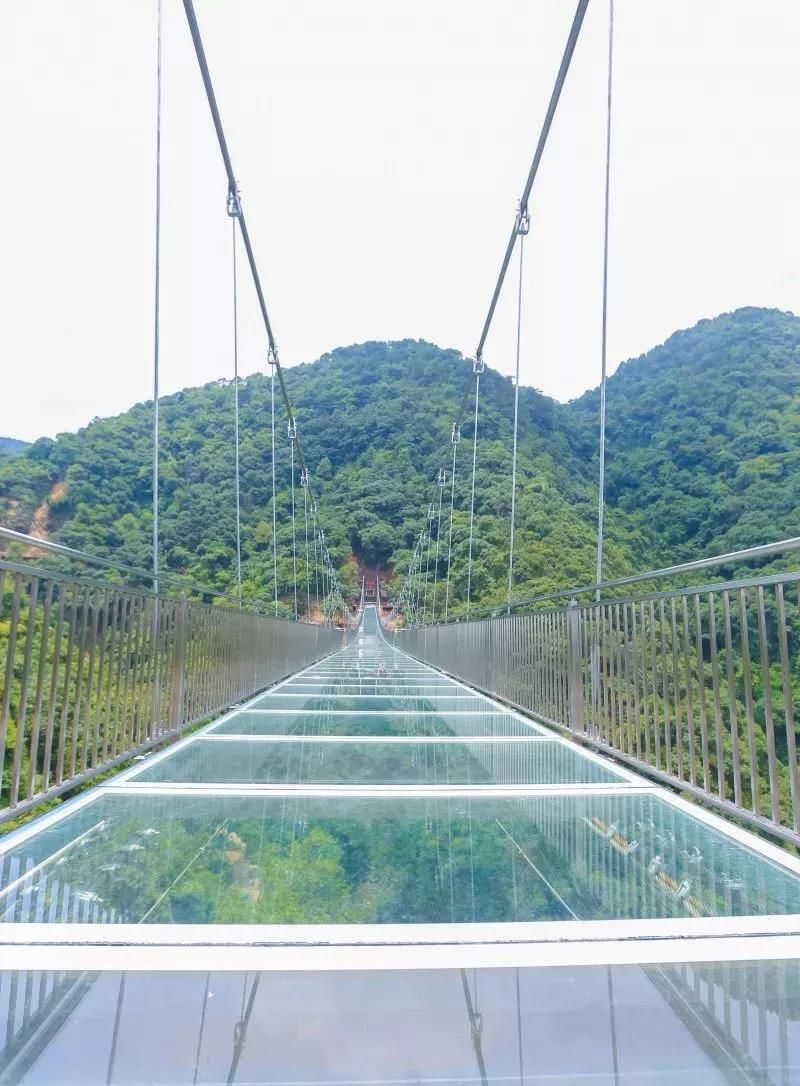 古龍峽玻璃橋全長329米,平均寬度3.8米,最寬處6.8米,橋上2個(gè)港灣式透明觀景凸臺位于最寬處,和UFO玻璃平臺遙相呼應(yīng)。作為世界最寬的觀瀑玻璃橋,在國內(nèi)第一家采用超大面積玻璃,橋面可以容納5人并行,也可從容地拍下全身照,面積達(dá)40平方米港灣式觀景凸臺設(shè)置了5D聲光電特效裝置,感應(yīng)到游客經(jīng)過時(shí),會(huì)出現(xiàn)“山崩地裂”“玻璃破碎”等奇幻效果。經(jīng)浙江大學(xué)土木工程系測試,玻璃橋靜態(tài)負(fù)載可超過700人。