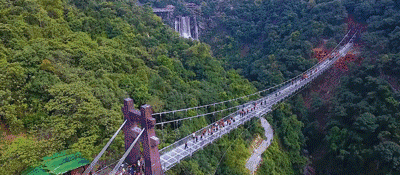 古龍峽觀瀑玻璃橋,位于景區(qū)萬丈崖瀑布群核心景點(diǎn)內(nèi),全長339.2米,平均寬度3.8米,最大寬度6.8米,創(chuàng)CWRA“世界上最寬的觀瀑玻璃吊橋”世界紀(jì)錄。