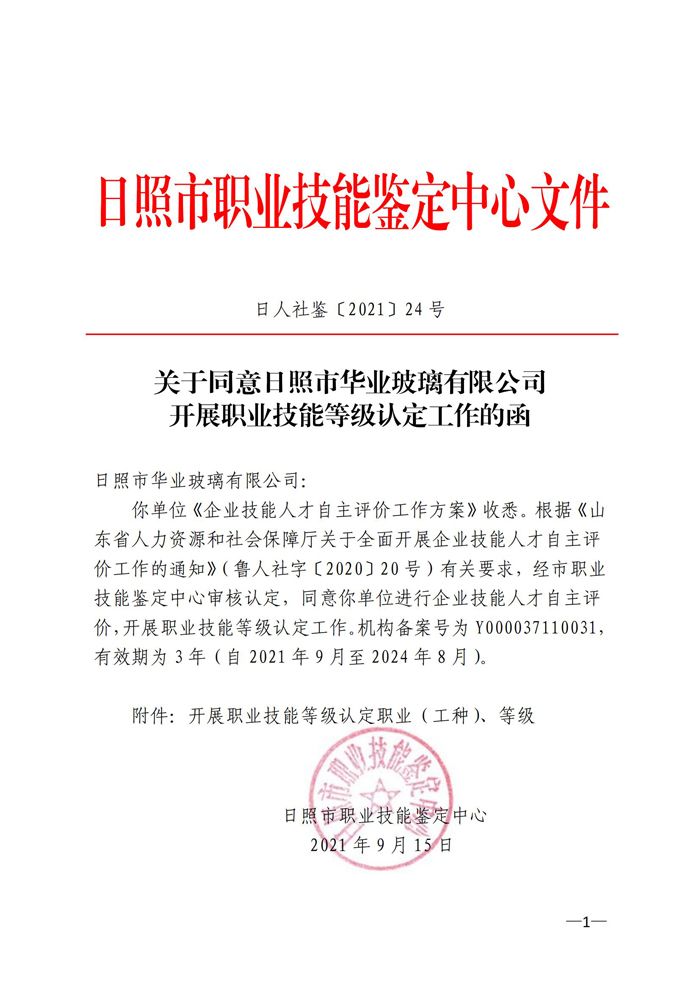 2021年9月15日,經(jīng)日照市職業(yè)技能鑒定中心審核認(rèn)定,同意我公司進(jìn)行企業(yè)技能人才自主評價,開展職業(yè)技能等級認(rèn)定工作。