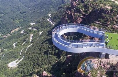 2018年6月12日,河南省新密市,經(jīng)過(guò)8個(gè)月的建設(shè),伏羲山旅游區(qū)的懸空玻璃環(huán)廊正式落成,游人走在環(huán)廊上感受“天空漫步”的刺激體驗(yàn)。據(jù)了解,伏羲山玻璃環(huán)廊將于6月16日起對(duì)外開(kāi)放,該橋采用無(wú)斜拉索設(shè)計(jì),整體工程用鋼量超3000噸,橋面使用150塊三層鋼化夾膠玻璃鋪設(shè),距離峽谷地面360米,環(huán)廊伸出懸崖30米。比美國(guó)科羅拉多大峽谷號(hào)稱(chēng)“世界第八大奇跡”的玻璃環(huán)廊還長(zhǎng)出近9米,可謂是“世界很長(zhǎng)的高空玻璃環(huán)廊”。